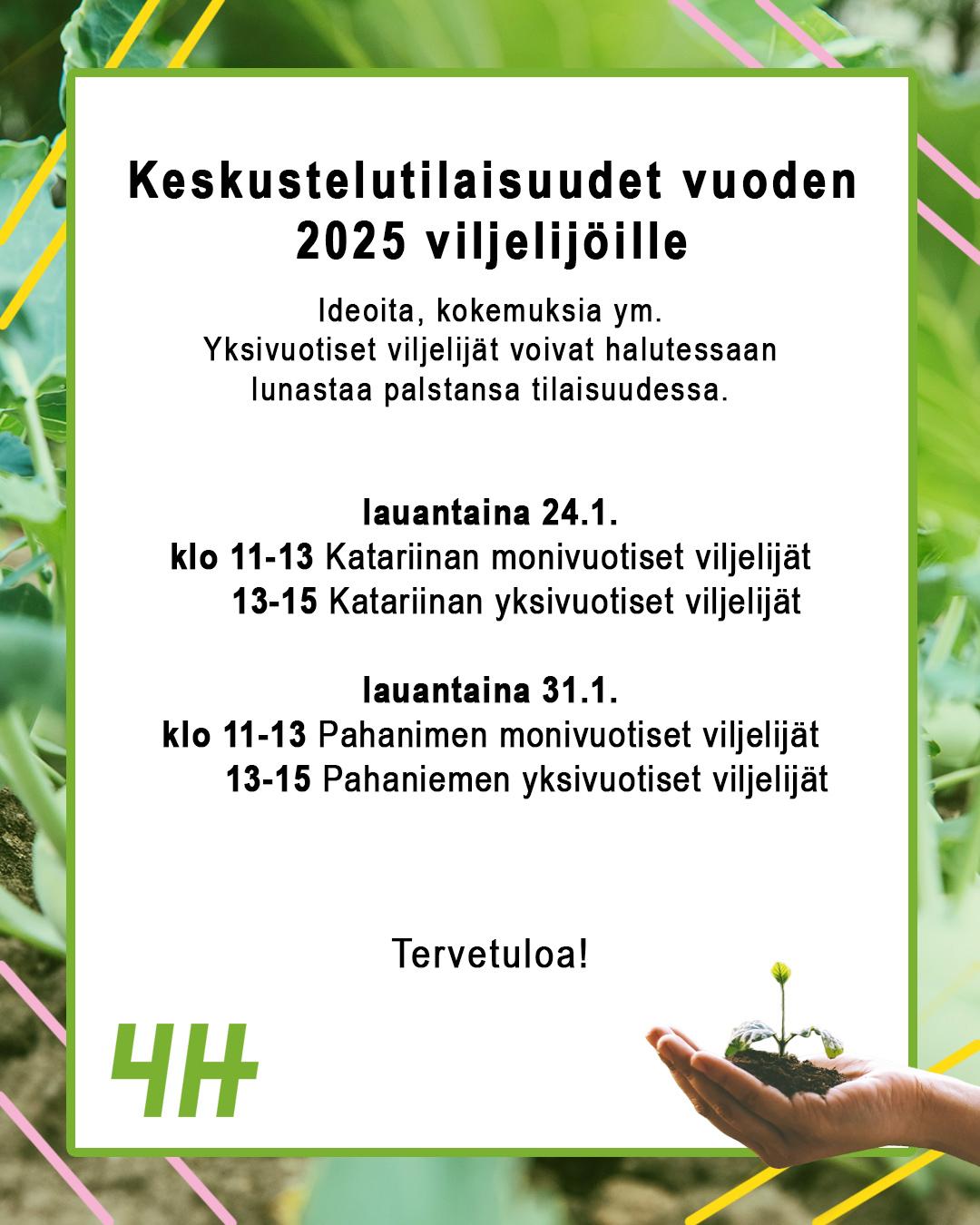Tule tapaamaan muita viljelijöitä, vaihtamaan kuulumisia ja inspiroitumaan tulevaa kasvukautta varten. Tilaisuus on avoin keskustelulle ja uusille ideoille!
